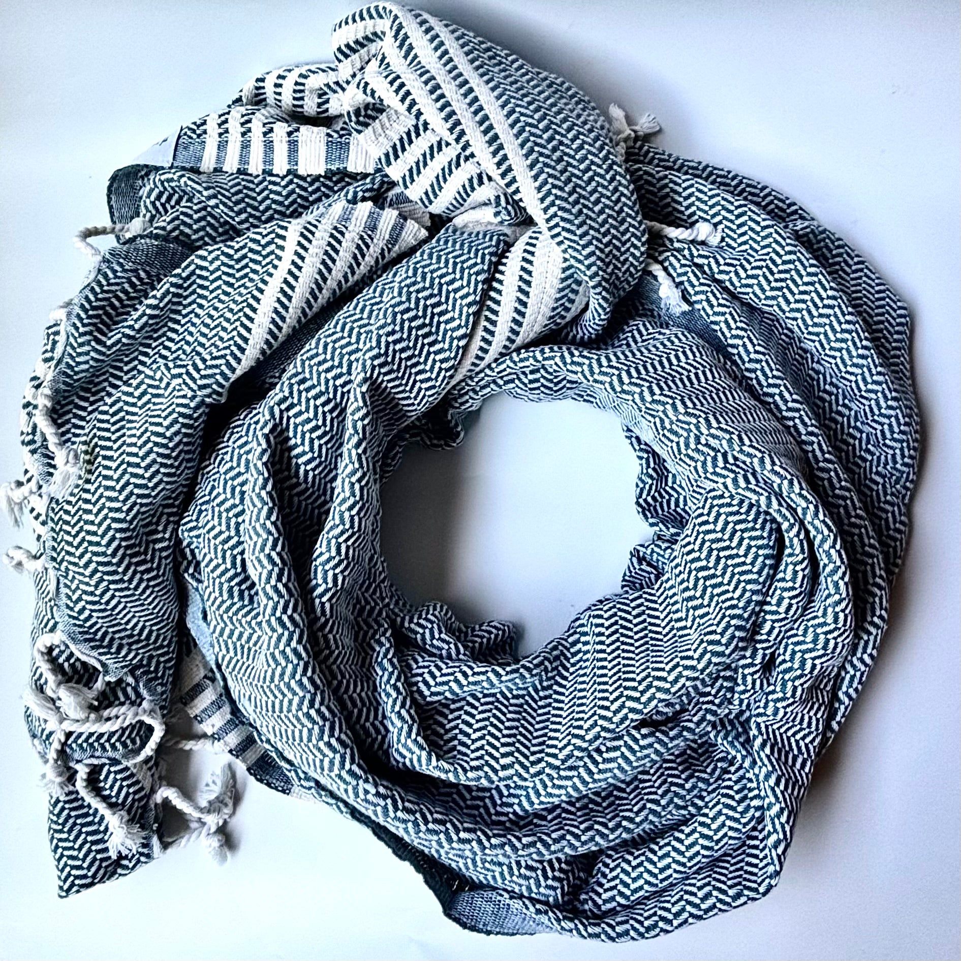 This best-selling Turkish towel is a medium-weight, twisted-tassel fringed classic. This classic palette and intricate design will elevate your bath, beach spread, blanket scarf, and travel game. Hand-woven from 100% pure Turkish cotton and fairly traded with artisans from the heart of Turkey, this towel is soft, luxurious and truly one of a kind. 64” L x 38” W with 2.5” twisted tassel fringe.